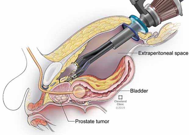 Laparoscopic or robotic-assisted laparoscopic prostatectomy: In these procedures, multiple small incisions are made, and specialized instruments and a camera are used to remove the prostate gland. The robotic-assisted approach involves the use of a surgical robot, controlled by a surgeon, to operate with enhanced precision and dexterity.